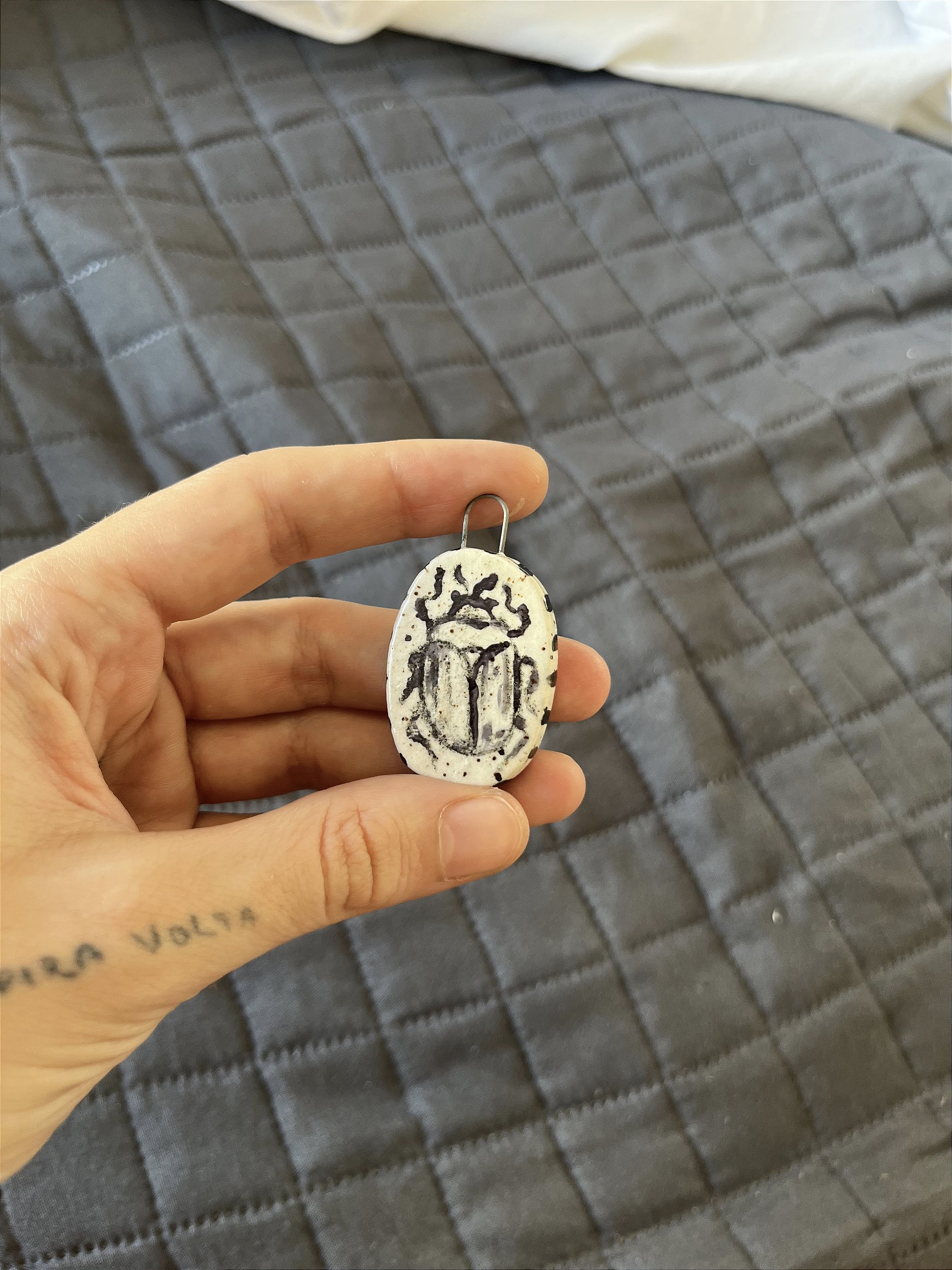 Pingente cerâmico com pintura manual em ambos os lados. Nao acompanha corrente. 4x 2.5 cm