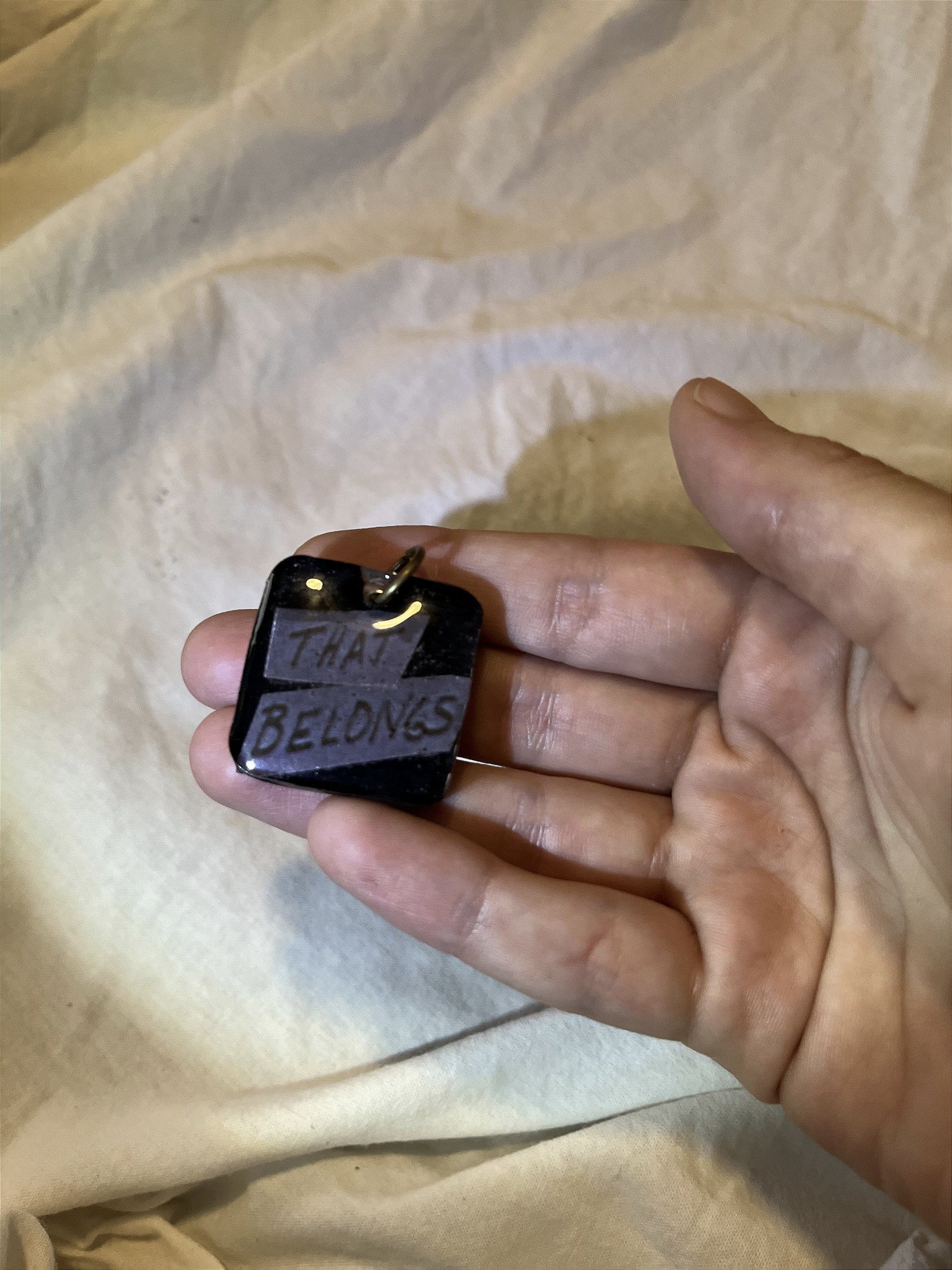 Pingente feito a partir de colagem analógica. Em resina. 3 cm